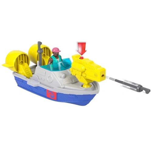 Играчката е с дължина 45 см, има звуци и движения и включва фигурка с патрулна лодка и изстрелвач за динамични приключения!
