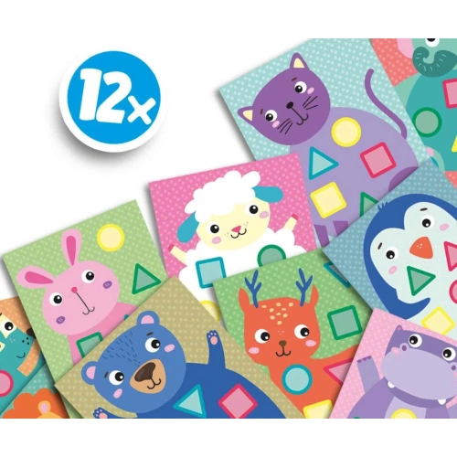 С мозайките My first стикери, малките деца се учат да разпознават и съчетават различни форми и цветове. Красивите 12 карти с животни изобразяват различни форми в различни цветове. За нула време те намират правилния стикер и с малко помощ (или сами) залепват всичките 72 стикера върху животните. Забавно занимание за родители с малки деца, където децата игриво тренират координацията си око-ръка и фината си моторика.