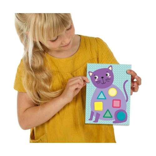Мозаечни стикери с различни цветове и форми върху предварително отпечатаните карти;