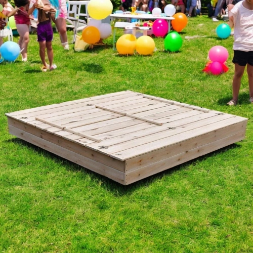 Здрав и екологичен дизайн: Изработен от масивна борова дървесина, пясъчникът е устойчив на интензивна употреба и напълно безопасен за малките.