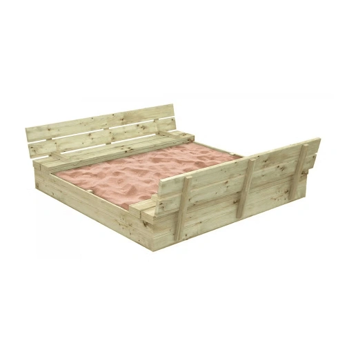 Голям дървен детски пясъчник с пейки и сгъваем капак