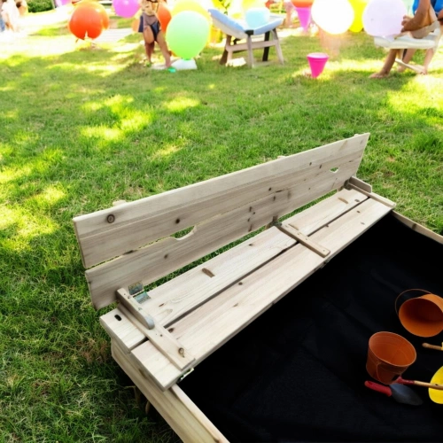Голям дървен детски пясъчник с пейки и сгъваем капак PAT67210