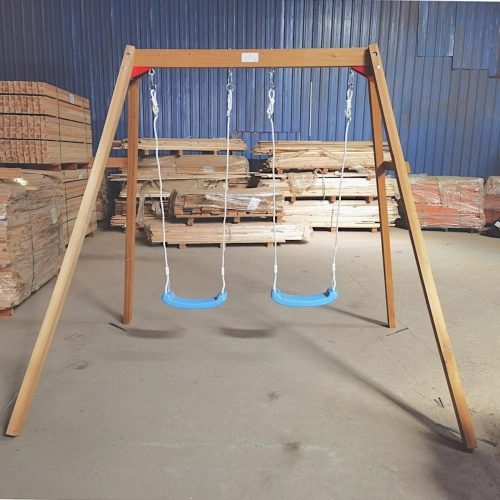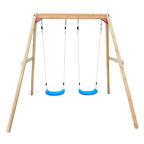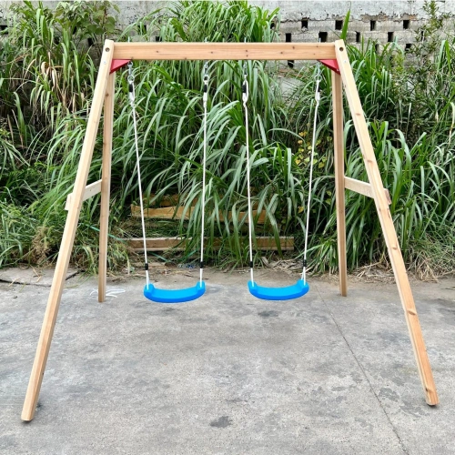 Конструкция: Здрава дървена рамка и двойна люлка за стабилност и безопасност при игра.