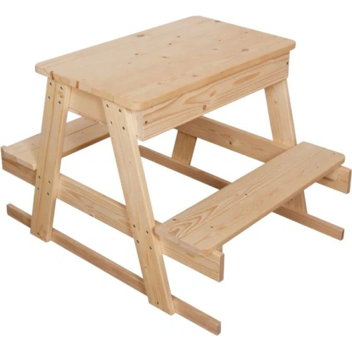 Практично Място за Съхранение и Пясъчник: Под плота се намира пространство, което може да се използва за съхранение на играчки или да се напълни с пясък за забавни игри с формички и лопатки.