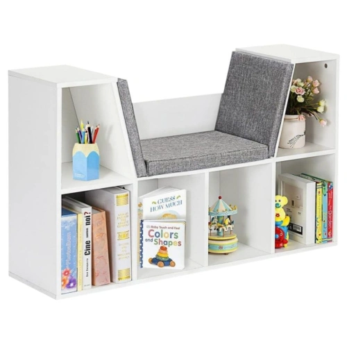 3 в 1 Етажерка, библиотека и пейка със 6 отделения за съхранение на играчки и книжки