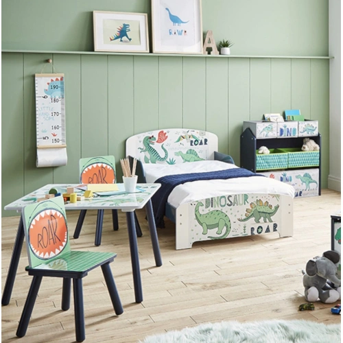 ВЪЛНУВАЩ ДИЗАЙН: Етажерката добавя закачлива нотка към всяка детска стая, хол, спалня или занималня. Моделът с динозаври в синьо и зелено вдъхновява креативността и въображаемата игра на децата.