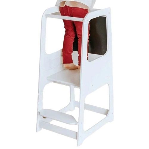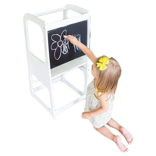 Бяла монтесори детска кула Образователно столче с черна дъск