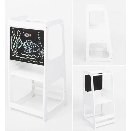 Бяла монтесори детска кула Образователно столче с черна дъск PAT67240