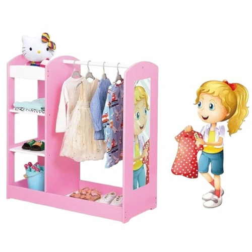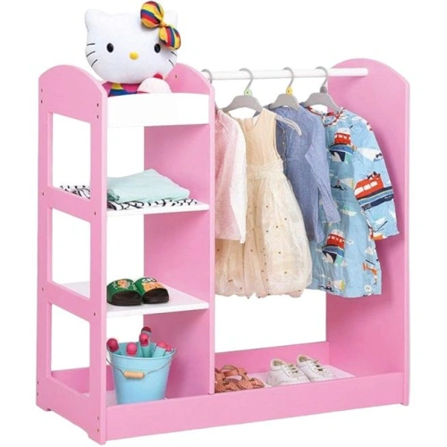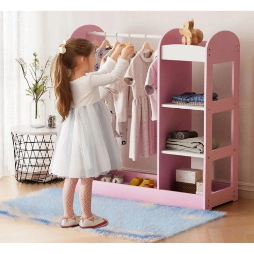 Перфектен размер за деца: Проектирана с подходящи размери за деца, Детската закачалка за дрехи осигурява удобство и практичност. Този център за обличане е специално проектиран за деца над 2 години. Със своята разумна височина от 100 см и отворен дизайн, детският гардероб позволява на децата удобно да съхраняват или изваждат дрехите си.