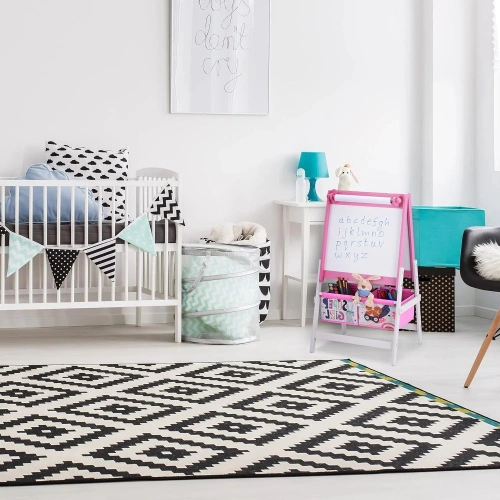 Мултифункционален и удобен дизайн: Детският статив GINGER HOME е снабден с черна дъска за писане с тебешир, бяла дъска за маркери и хартиена ролка за безкрайни рисунки. Този 3 в 1 статив е идеален за развиване на творческите умения на вашето дете и за насърчаване на учебния процес чрез игра. С размерите си, той е подходящ за всяко детско помещение, било то у дома или в детската градина.