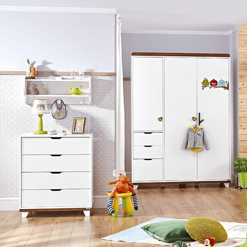 Трикрилен детски гардероб с 4 рафта и 3 чекмеджета Kakule