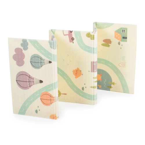 Осигурете на детето си удобно и безопасно място за игра със сгъваемо термо килимче Joy Ride, Moni Toys от XPE пяна. С меката си, неплъзгаща се и топлоизолираща повърхност, то е идеално за всяка детска стая или дневна. Благодарение на двустранния дизайн, можете лесно да сменяте визията, а когато не се използва, килимчето се сгъва компактно за удобно съхранение.
