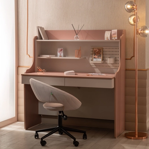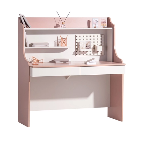 Детското бюро с надстройка ESTELLA предлага интелигентно решение за организиране на учебния процес и творчески занимания. Широкият плот осигурява достатъчно пространство за компютър, книги и учебни материали, а вграденият USB захранващ модул улеснява зареждането на мобилни устройства по време на работа и учение. Надстройката включва практични рафтове за съхранение на книги, тетрадки и декорации, което създава подредена и вдъхновяваща работна среда. В горната част се намира перфорирано метално пано, на което могат да се закачат бележки, снимки и напомняния