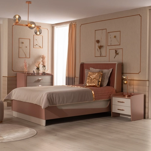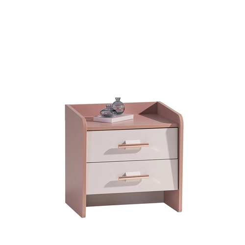 Нощното шкафче ESTELLA съчетава стил, функционалност и внимание към детайла – идеалното допълнение към всяка детска или тийнейджърска стая. Моделът разполага с просторни чекмеджета и широка горна повърхност, която осигурява удобно място за книга, очила или лампа до леглото. Изисканата визия е подчертано с розово-златист метален обков, а заоблените ръбове допринасят за още по-елегантна и безопасна визия на модела.
