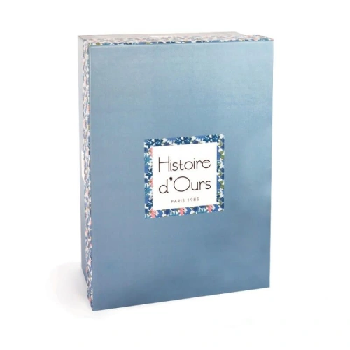 Този красив син плюшен заек, произведен от Doudou, е готов да бъде новият приятел на вашето дете! Играчка оцветена в наситен син цвят, съчетан с флорален принт, излъчваща нежност и чар за малки и големи! Представен в красива кутия с разнообразни растителни мотиви, този мек плюшен заек е идеален подарък за новородени! Подходящ за гушкане, игра, или украса на стаята.
