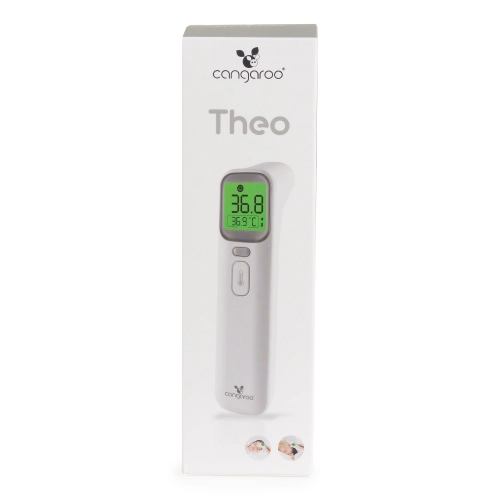 Безконтактният инфрачервен термометър Theo от Cangaroo осигурява бързо, точно и безопасно измерване на температурата на вашето бебе или предмети. С него можете да измервате температурата на челото, ушния канал, както и на стаи или предмети, например мляко в бебешка бутилка.