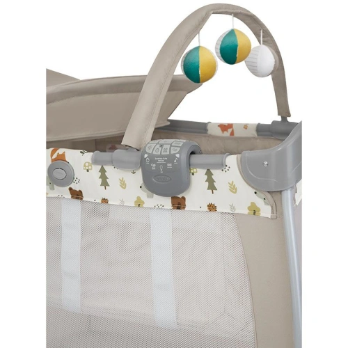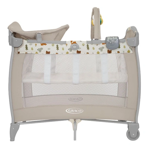 Запознайте се с кошарата за пътуване на Graco с най-много функции! Още от първите си дни с бебето се възползвайте от удобната Contour Electra, за да осигурите комфорт и уютно място за сън. Просторната кошара се предлага с интегриран повивалник, гриф с играчки и сваляща се контролна кутия, която ви позволява да контролирате музиката, вибрацията и нощната светлина.