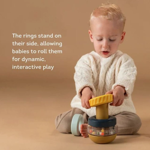 Ярка и завладяваща играчка с рингове за нанизване, предназначена за малчугани над 9 месеца.