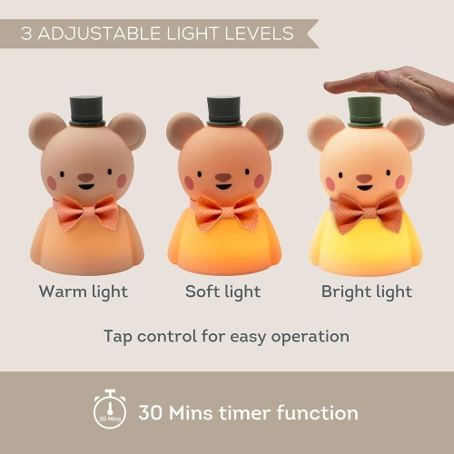 Мека, успокояваща и неустоимо сладка, тази презареждаща се силиконова нощна лампа е предназначена за новородени и по-големи деца.