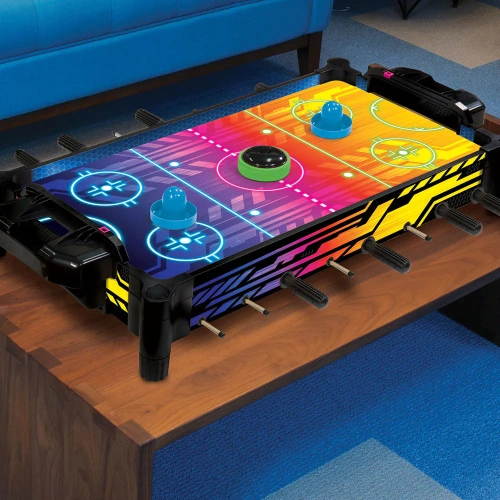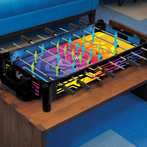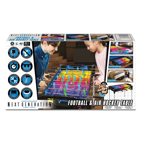 Настолната игра футбол и въздушен хокей е чудесно предложение за домашно забавление с приятели или семейство. Играй с цялото семейство - превърни семейните занимания в приятна емоция. Превключвай лесно между игрите - просто обърни дъската! С неонови светлини и две страни - играй въздушен хокей или футбол и покажи състезателния си дух.