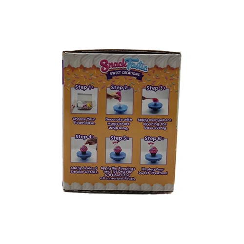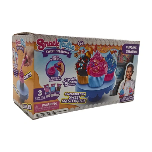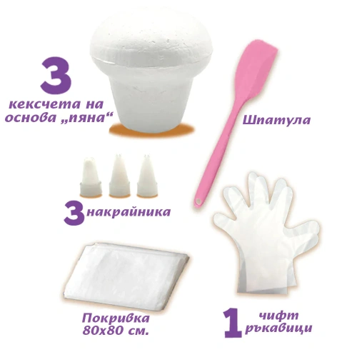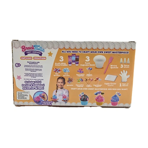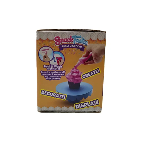 С този творчески комплект децата могат сами да „приготвят“ и украсяват сладки изкушения, вдъхновени от любимите на всички кексчета. В кутията ще откриете всичко необходимо за игра: материали за шприцоване и декорация, специален крем-глазура и различни поръски и декорации за завършек. Комплектът е подходящ за деца над 6 години и е идеален за развиване на въображението, фината моторика и креативността. Готовите „сладки шедьоври“ могат да бъдат изложени като част от играта или колекцията.