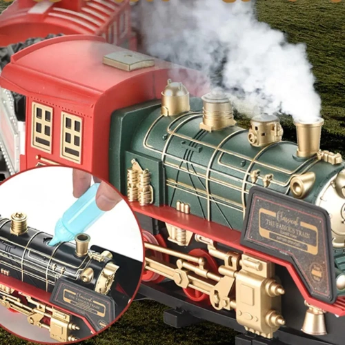 Страхотен ретро влак с реалистични функции! Работи с общо 6 АА батерии, които не са включени в комплекта.