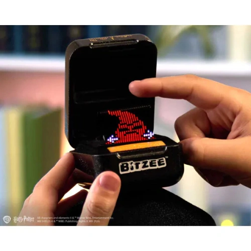 Открийте магията на вълшебния свят с Bitzee Хари Потър. Героите реагират на докосване, движение, плъзгане и накланяне с очарователни звуци и реакции при всяко взаимодействие. В стилизираната черно-златна капсула на Хогуортс съберете 20 от любимите си магьосници, вещици и същества от поредицата за Хари Потър, включително Хари, Хърмаяни, Рон, Дъмбълдор, Хедуиг, Доби и други, всички на едно място. Докато взаимодействате и играете, напълнете казана, за да привлечете нови герои – всеки събран герой пристига с Хогуортс Експрес, точно като във филмите. Изпълнявайте задачи на героите, размахвайте капсулата, за да изречете заклинания и да извикате Покровител, играйте мини игри, за да разкриете емблематични предмети и много други. Щом съберете Хари, Хърмаяни и Рон, играйте супер играта. Колкото повече играете с Bitzee Хари Потър, толкова повече магия ще отключите. Преживейте отново събития като празниците в Хогуортс и открийте емблематичните моменти от филмите за всеки герой, включително Хари, който играе куидич, Хърмаяни, която приготвя многоликова отвара и Рон, който играе магьоснически шах.
