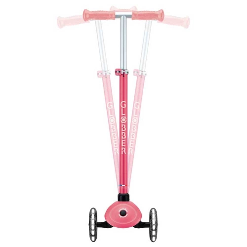 PRIMO PLUS GLOW LIGHTS впечатлява с иновативна функция – светещи детайли! При всяка вечерна разходка дръжката, спирачката и надписите на основата и кормилото ще светят в ярко розов цвят. Така малкият приключенец ще заобича карането след залез и ще го превърне в своя любима игра!
