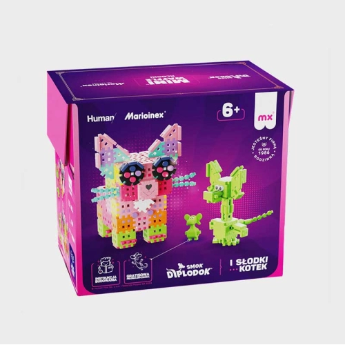Подарете на детето си незабравими строителни приключения с мини вафления конструктор „Диплодок и котенце“! Комплектът съдържа 280 части, които позволяват сглобяването на динозавър Диплодок, сладко котенце и тематични елементи за игри, развиващи въображението и креативността.