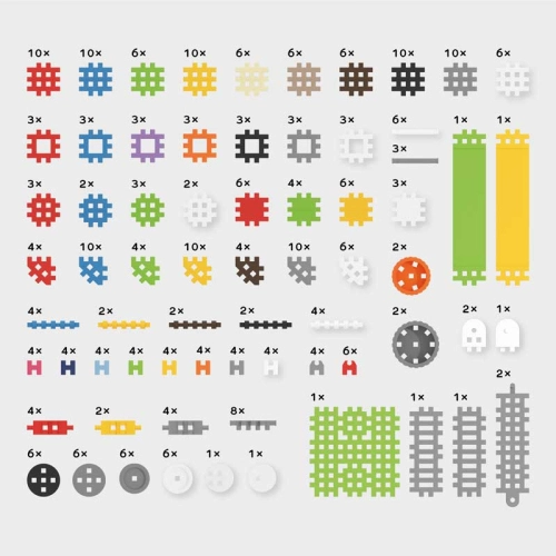 Комплектът стимулира логическото мислене, пространственото възприятие, креативността и фината моторика, като осигурява часове увлекателна игра и обучение чрез забавление.