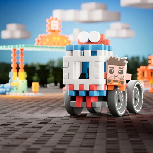 Конструкторът включва разнообразни цветни елементи, които са лесни за сглобяване и безопасни за игра. Той развива фината моторика, техническото мислене и въображението, докато децата строят, подреждат и пресъздават различни ситуации от градския живот.