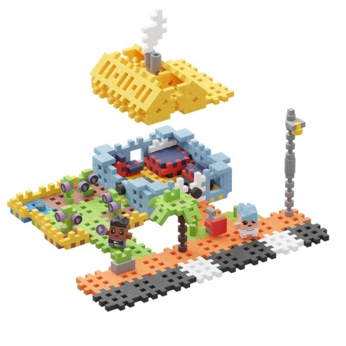 Ярките цветове и различните форми стимулират фината моторика и логическото мислене, докато децата се забавляват и създават свои собствени истории. Конструкторът е безопасен и лесен за сглобяване, подходящ за малки архитекти и творци.