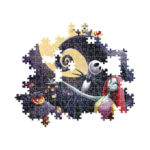 Потопете се в приказния свят на Тим Бъртън с този невероятен пъзел, вдъхновен от класическия филм „Кошмарът преди Коледа“!