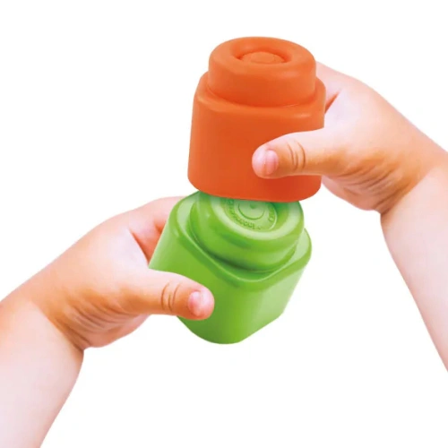 Кола с весел дизайн на животинче със сензорни текстури, капак с изрези и 4 меки форми. Тези дейности помагат за развитието на логически връзки, сръчност и координация око-ръка. Освен това, релефните текстури стимулират развитието на докосването.