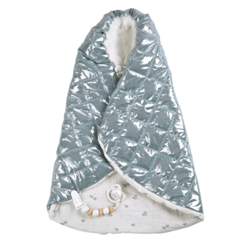 Детска кукла-бебе Бория с блестящо сиво одеялце и биберон 38 см