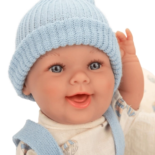 Детска кукла-бебе Гауди със син гащеризон и бял кош 33см