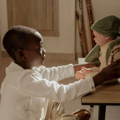 Запознайте се с Миес – сладкото бебе, което оживява играта! С височина 45 см, тя е облечена в бежово-зелено костюмче и има функция “плаче”, което прави грижата за нея по-реалистична и забавна. Перфектна за развиване на въображението и социалните умения на децата.