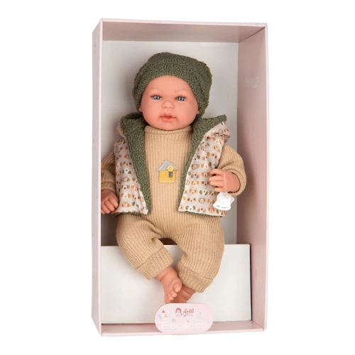 Кукла-бебе Миес с бежово-зелено костюмче, която плаче 45 см