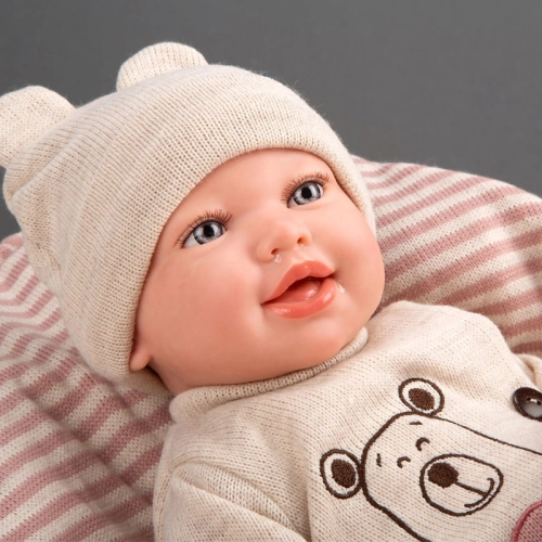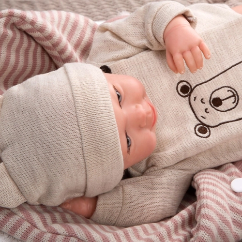Усмихната кукла-бебе Лейн със спален чувал и биберон 45 см