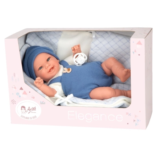 Усмихната кукла-бебе със синьо костюмче и одеялце 35 см PAT68370