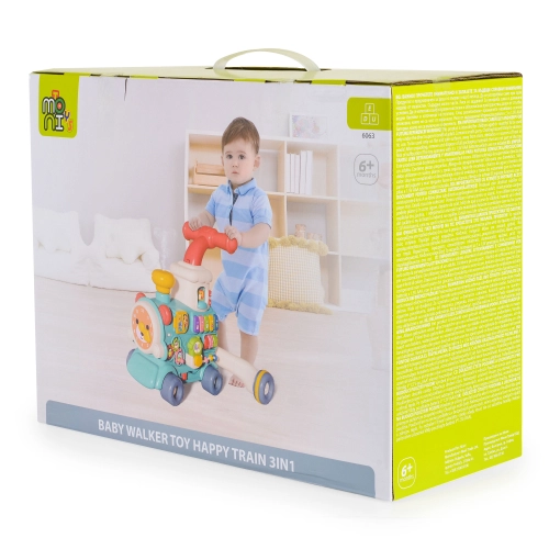 Играчката за прохождане 3в1 Happy Train, Moni Toys комбинира три функции в едно забавно и развиващо изживяване. Тя подпомага прохождането, стимулира двигателните умения и насърчава детето да открива света чрез игра.