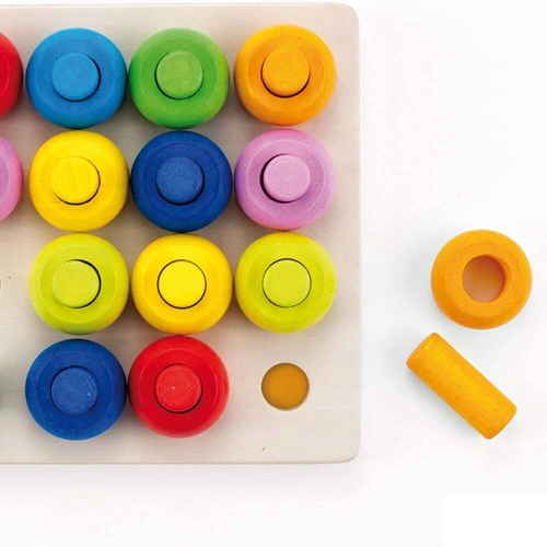 Децата трябва да разпознаят и свържат частите с еднакъв цвят, след което да ги поставят върху дъската.