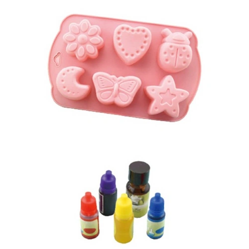 Комплектът съдържа: сапун, пигменти, етерично масло, формички и торбички с цип.