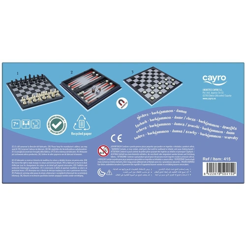 C415 – Магнитен комплект 3 в 1: Шах, Дама и Табла от Cayro е идеалният избор за всички любители на класическите настолни игри.