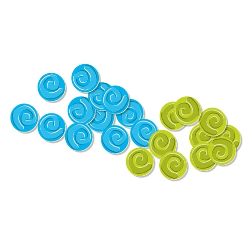 50 магнитни жетона в два цвята (с диаметър 18 мм);