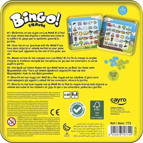 C772 – Игра Бинго за път в метална кутия от Cayro е идеалното забавление за дълги пътувания, ваканции или уикенд приключения с децата.
