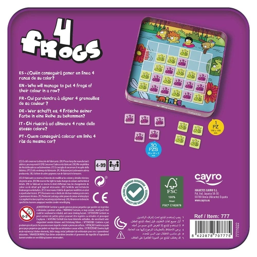C777 – Магнитна игра „4 в редица – Жабки“ от Cayro е забавна и компактна стратегическа игра за двама, идеална за пътешествия, разходки или занимания у дома. Със свеж и закачлив дизайн с цветни жабки, тази класическа логическа игра привлича вниманието на децата и ги предизвиква да мислят тактически.