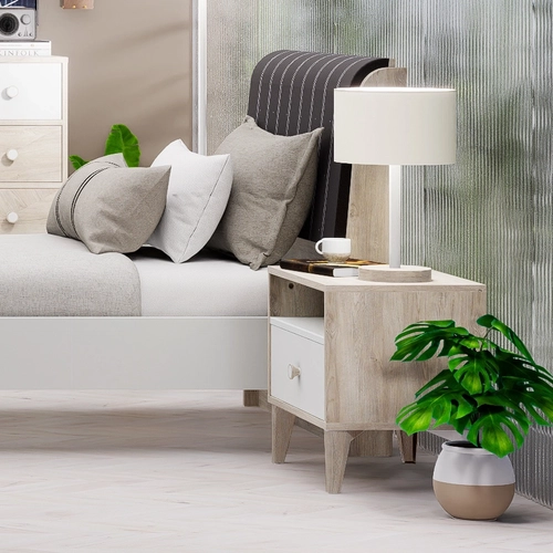 Нощното шкафче Ekvador впечатлява с изчистен и съвременен дизайн, който лесно се вписва във всяка спалня. Моделът е с дължина 56 см, дълбочина 40 см и височина 52 см. Стабилната конструкция и висококачествените материали гарантират дълготрайна употреба, а стилният вид добавя нотка елегантност към интериора.