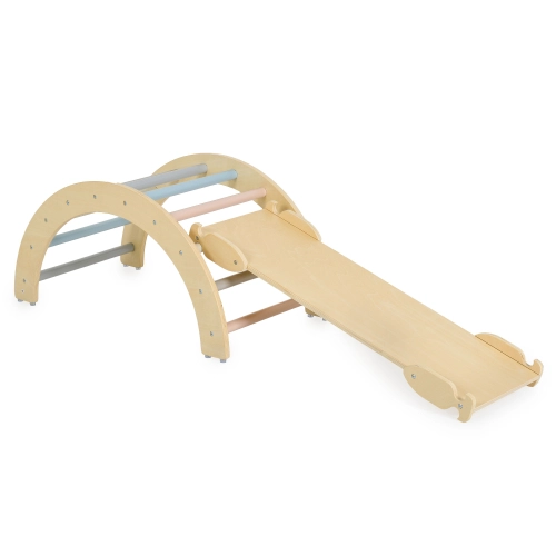 Триъгълникът на Пиклер 3в1 от Moni Toys е многофункционален комплект за активна игра, който вдъхновява децата да се движат, изследват и развиват увереността си. Комплектът включва три елемента – Триъгълник на Пиклер, арка за катерене и двустранна рампа, които могат да се използват самостоятелно или в различни комбинации, създавайки множество варианти за игра.