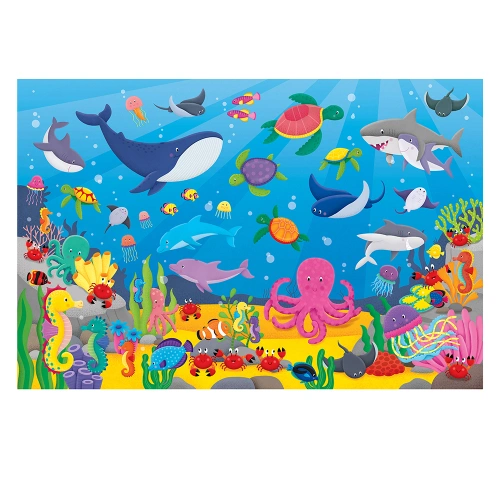 Това е красиво илюстриран пъзел за под с 30 големи елемента. Научете се да броите с помощта на океански животни, подредени в групи от 1-10 в този вълнуващ пъзел.
